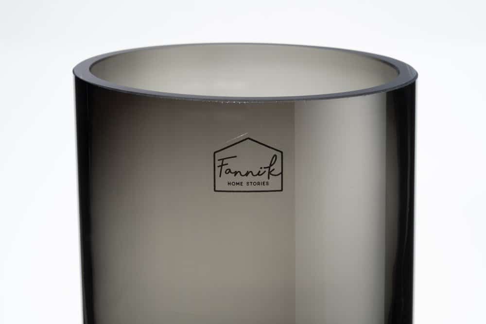 Fanni K’s Ulpu vase has a stylish cylindrical shape with straight edges and a flat base. Its minimalist and modern design is perfect for single stems, dried flowers, or modern floral arrangements. The vase is made of dyed glass and is handmade, making each piece unique. Size: 12 x 12 x 20 cm. Hand wash.