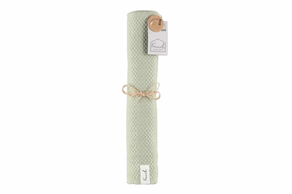 Fanni K Silva kaitaliinassa on kaunis punoskudonta ja se on valmistettu 100% kierrätysmateriaalista. Koko 40 x 160 cm. Väri vihreä. Materiaali puuvilla. Kaitaliinalla päivität helposti keittiösi ja kattauksesi ilmettä ja tunnelmaa vuodenajan tai fiiliksen mukaan. Vesipesu 40 astetta.