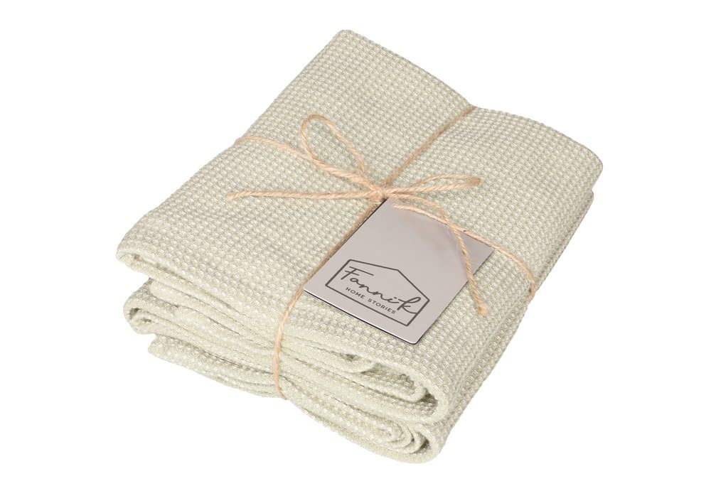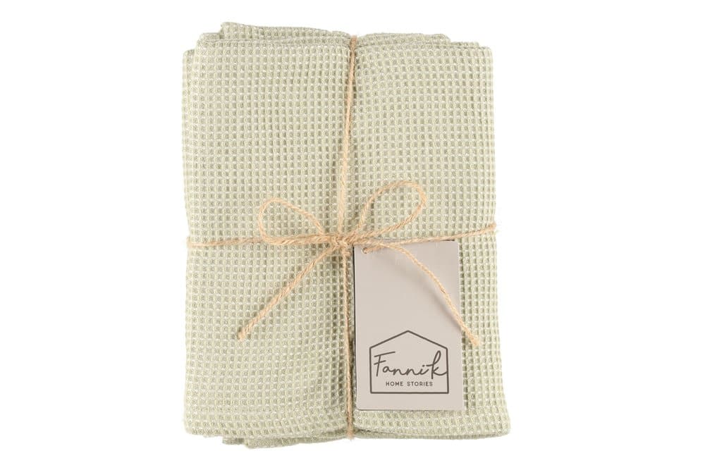 Fanni K Bamboo keittiöpyyhesetti sisältää kaksi keittiöpyyhettä. Materiaali on puuvilla-bambuviskoosi sekoitetta, imukykyinen ja kuivuu nopeasti. Koko 50 x 70 cm. Väri vihreä. Vesipesu 40 astetta. Tuotteella on Ökotex-sertifikaatti, mikä tarkoittaa että tuote on turvallinen eikä se sisällä haitallisia kemikaaleja.