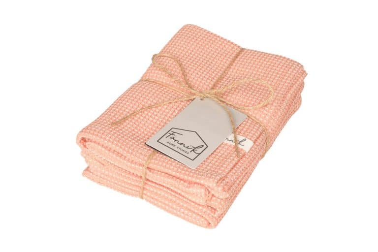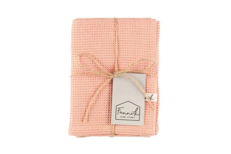Fanni K Bamboo keittiöpyyhesetti sisältää kaksi keittiöpyyhettä kooltaan 50 x 70 cm. Materiaali on kudottua puuvillan ja bambun sekoitusta, joka kuivaa hyvin ja kuivuu nopeasti. Väri persikka. Materiaali 50 % puuvilla, 50 % bambuviskoosi. Vesipesu 40 astetta.
