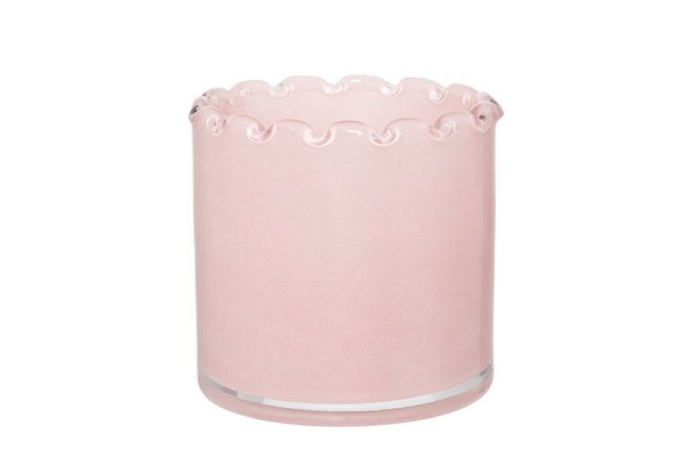 Lasilyhdyn muoto on selkeä ja ajaton ja sen yläreunaa koristaa kauniisti aaltoileva reunus, joka tuo tuotteeseen persoonallista ilmettä. Vaaleanpunainen lasi korostaa kynttilän valoa ja luo tilaan lämpimän tunnelman. Lasilyhdyn koko on 8,5 x 8,5 x 8 cm.