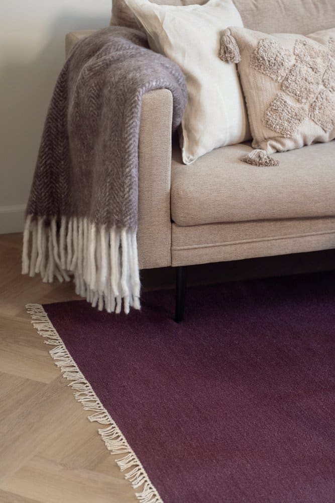 Fanni K Sammal torkkupeitteen materiaali on pehmeää ja lämmintä villasekoitetta. Pitkät koristeelliset hapsut. Koko 125 x 150 cm. Väri viininpunainen, hapsut valkoinen. Materiaali 30 % villa, 55 % akryyli, 15 % nylon. Käsinpesu. Tuotteella on Ökotex-sertifikaatti, mikä tarkoittaa että tuote on turvallinen eikä se sisällä haitallisia kemikaaleja.